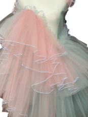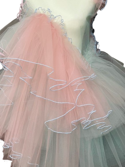 ピンクとミントブルーのバイカラー。アシンメトリーなデザインが特徴で、ふわふわとボリュームたっぷりに仕上げました。