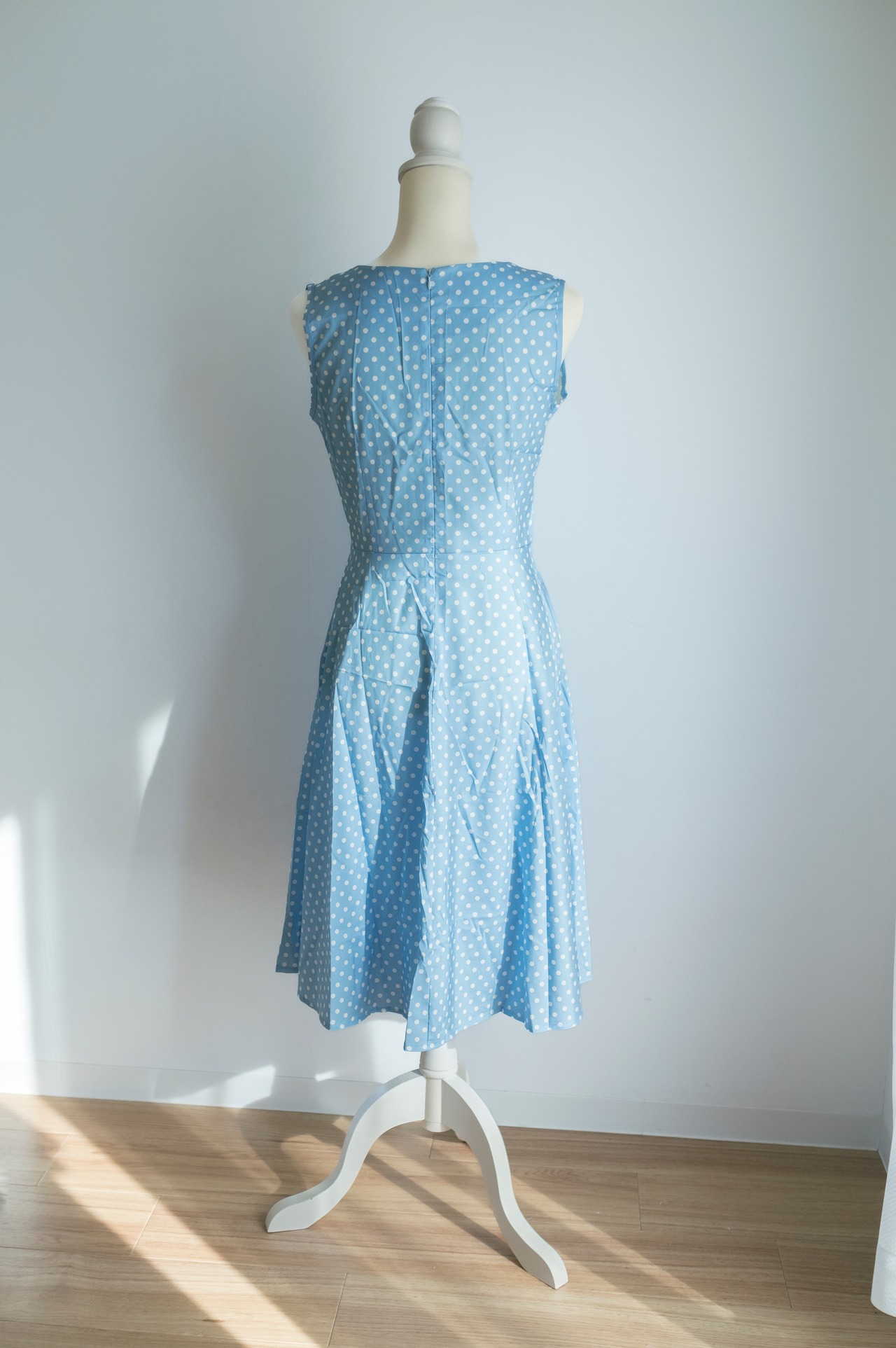 レトロな雰囲気満載の小さなドットのAラインワンピースです。