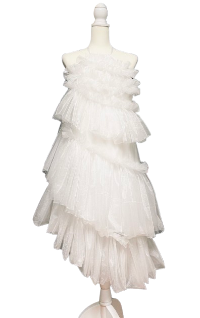 ふわりと柔らかい手触りと光沢感がある生地を使って、制作した白色のワンピースです。